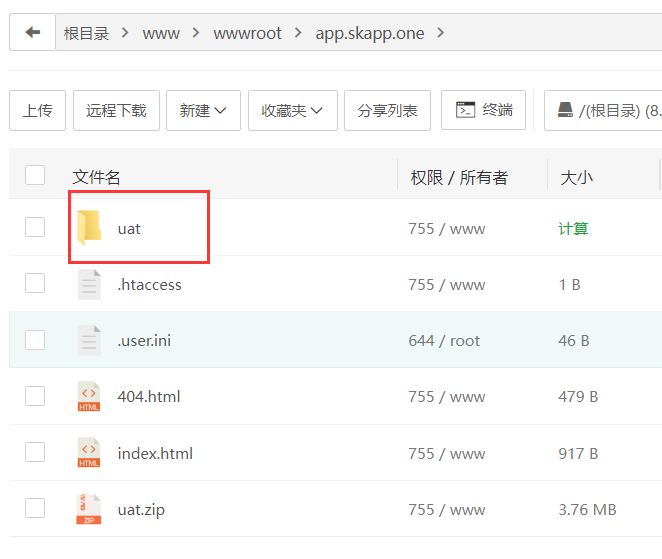 1.将uat文件上传到服务器,放到创建域名的根目录下。